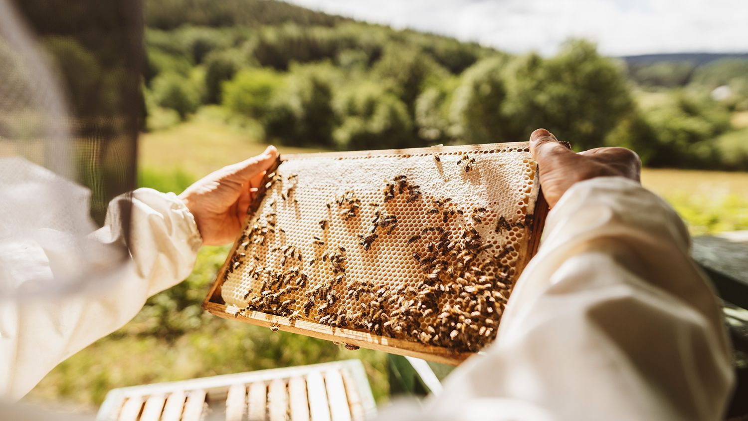 Hofimkerei: Auf Anfrage erhalten Sie nicht nur Einblicke in die Welt der Bienen, sondern können auch aktiv mitwirken und unsere hofeigenen Produkte entdecken.